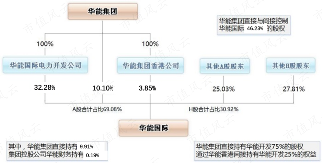 公司的实际控股公司是中国五大发电集团之一的华能集团,截至2021年末,华能集团直接与间接控制公司46.2%的股权。