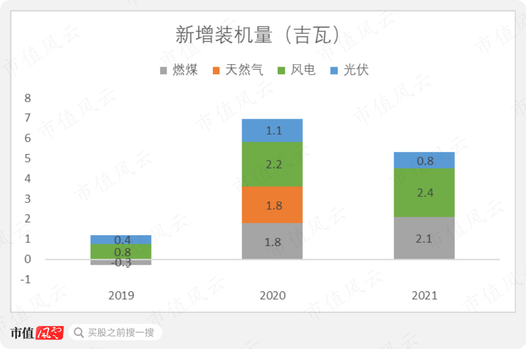 公司规划每年新增5 GW的新能源装机容量,但这个任务在“十四五”开局之年也没有完成。2021年,公司新增新能源装机容量仅3.2 GW,其中风电新增2.4 GW,光伏新增0.8 GW。