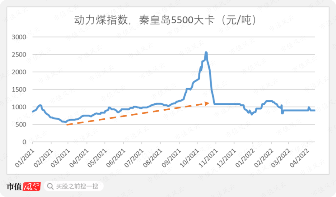 公司在2021年未达成新能源投资目标另外一个原因是“市场煤”与“计划电”之间的冲突:高昂的煤价让公司吐血三升,咬着牙也得完成发电任务。