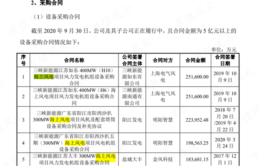 根据三峡能源(600905.SH)在2021年披露的招股说明书,从勘察、设计、采购设备到施工,粗略估计海上风电平均成本在1500万~2000万元/兆瓦之间,陆上风电和光伏的平均成本在600~800万元/兆瓦之间。