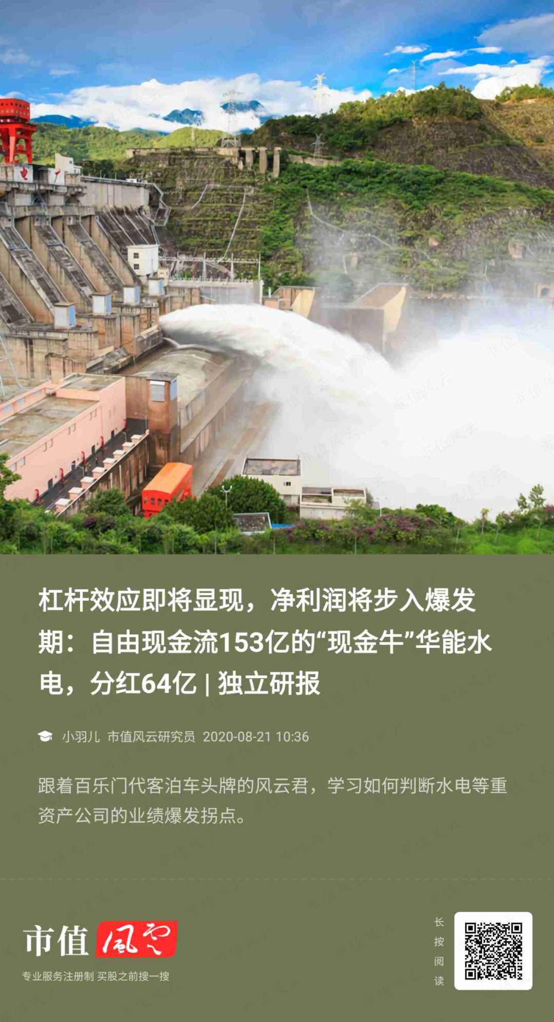 同在华能集团控制下的华能水电(600025.SH)风云君也有覆盖过,感兴趣的同学可以在市值风云App查看《杠杆效应即将显现,净利润将步入爆发期:自由现金流153亿的“现金牛”华能水电,分红64亿|独立研报》。