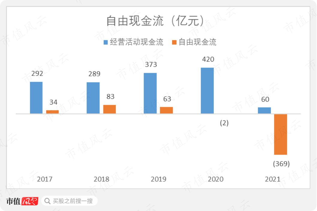 但2021年,由于经营活动产生的现金流量骤减,导致自由现金流情况堪忧。