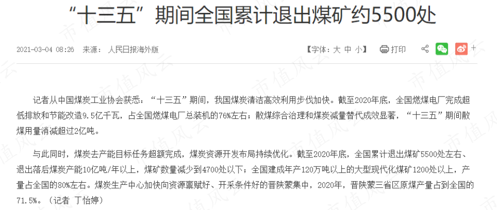 煤炭行业在2016年开始了供给侧改革,在“十三五”期间累计退出落后产能10亿吨以上。