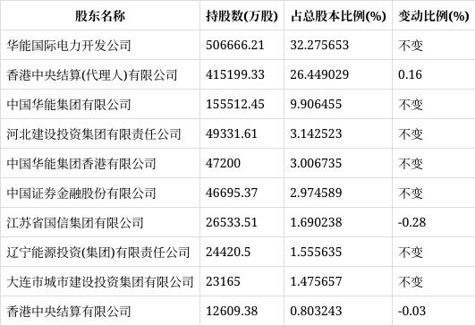 三季报显示,2022年三季度末的公司十大流通股东中,持股最多的为华能国际电力开发公司,占比32.28%。十大流通股东名单相比2022年二季度末维持不变。在具体持股比例上,香港中央结算(代理人)有限公司持股有所上升,江苏省国信集团有限公司、香港中央结算有限公司持股有所下降。
