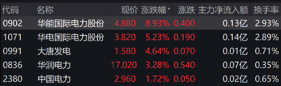 4月26日,电力板块在华能国际电力股份的带领下齐涨。