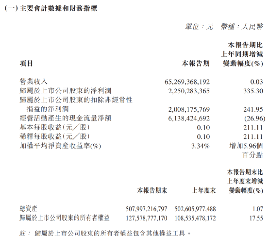 4月25日,华能国际电力股份发布的最新一季报显示,截至2023年3月31日第一财季盈利22.5亿元,上年同期亏损9.56亿元,扭亏为盈;总营收652.69亿元,同比增长0.03%。