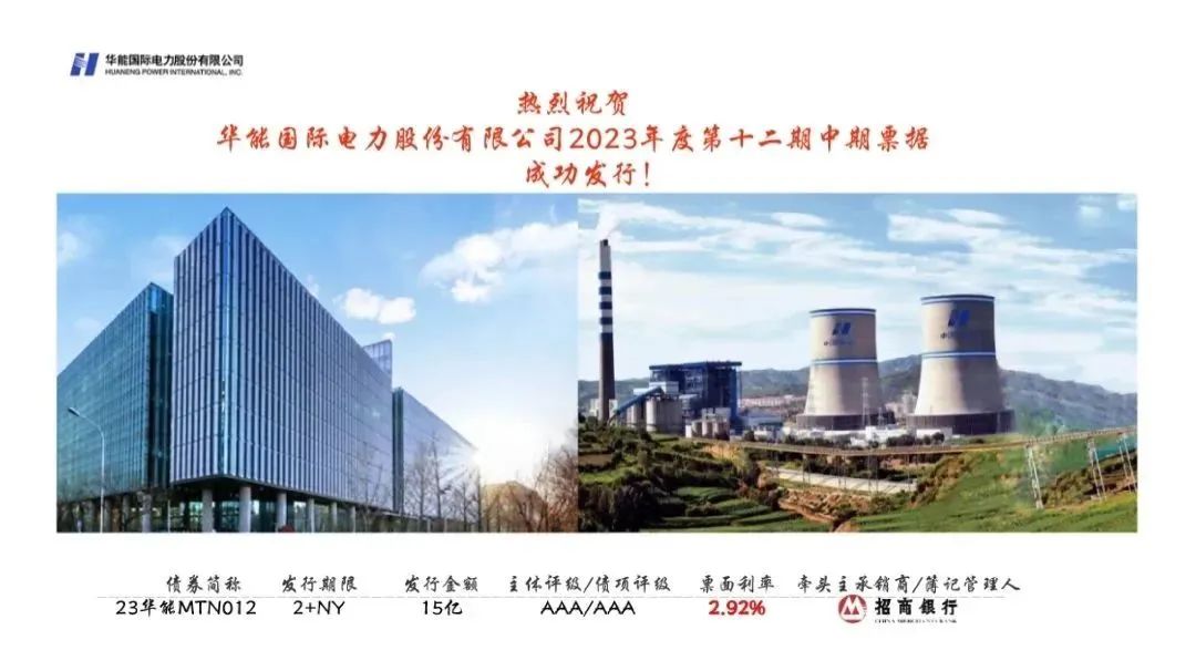 6月9日,华能国际2023年度第十二期中期票据成功发行。本期债券发行规模15亿元,发行期限2+N年,发行利率2.92%。继4月21日、6月3日华能国际先后发行的第十期、第十一期中期票据后,再次刷新电力企业永续债利率新低,同时创今年以来银行间市场永续债最优利率。
