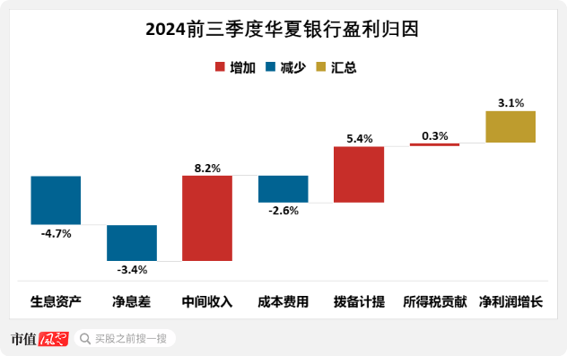 2024年前三季度,生息资产萎缩(同比增速-4.7%)与营收增长停滞(同比增速0.04%)基本吻合。在此背景下,华夏银行主要通过多确认中间收入与拨备反哺来实现盈利增长。这两个途径的持续性都要打一个大大的问号。
