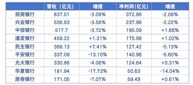 统计发现,9家A股上市股份行中,有7家营收同比下滑,仅民生银行和浦发银行同比增加,增幅分别为7.41%、1.31%。
