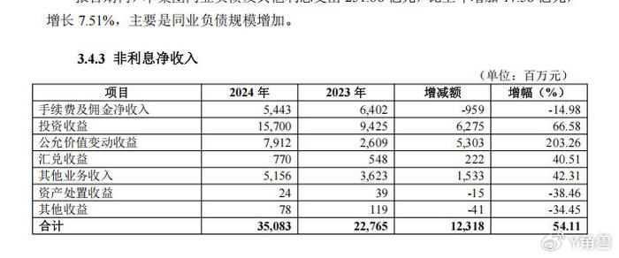 其中,投资收益、公允价值变动收益、汇兑收益合计为 243.82 亿元,占到总营业收入的25%以上。相比之下,北京银行上述三部分的收入,占当年度总收入的20.64%。