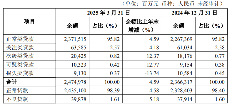 次级类和可疑类贷款增速分别达12.37%和12.77%,而损失类贷款减少13.74%,显示银行通过核销处置部分高风险资产,但潜在风险仍在累积。