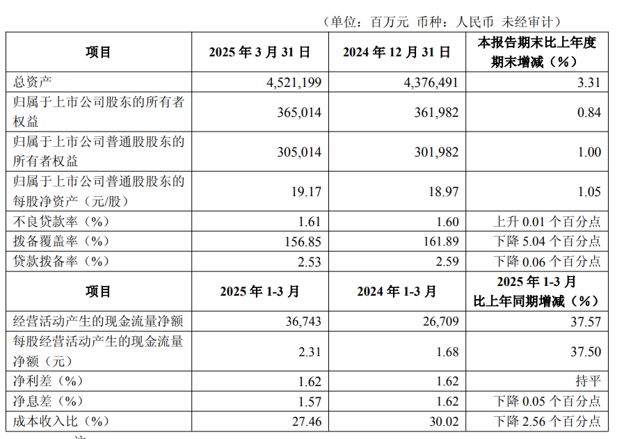 但另一边,华夏银行1季度总资产增长了:比2024年末增长3.31%至4.52万亿元,贷款总额比上年末增长4.59%至2.47万亿元,存款增速更是达到6.15%。