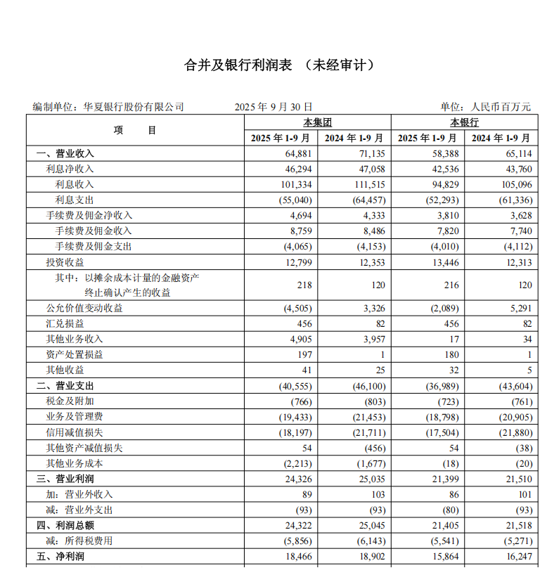 与此同时,强化资产质量,也减轻了华夏银行计提信用减值损失的压力。与上一年同期相比,华夏银行今年前9月少提了35.14亿元的信用损失减值。值得一提的是,华夏银行的不良贷款率从2024年末的1.6%下降至2025年9月末的1.58%,显示出资产质量的持续改善。
