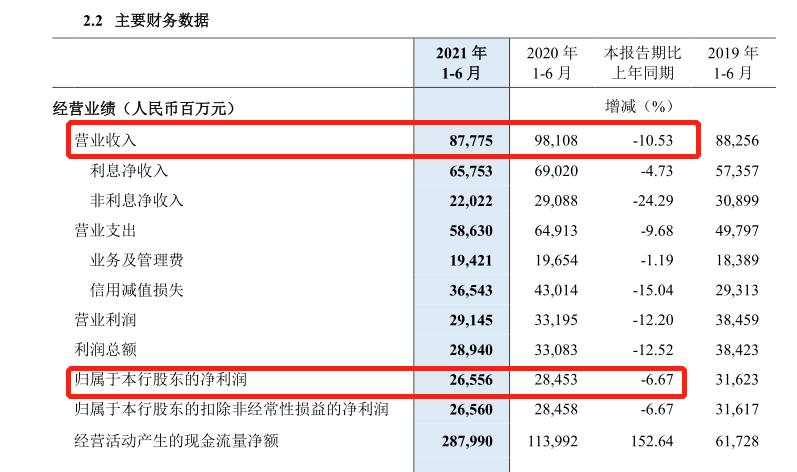 在疫情缓和的情况下,该行今年上半年的营收、归母净利润竟不及去年,着实令人吃惊。