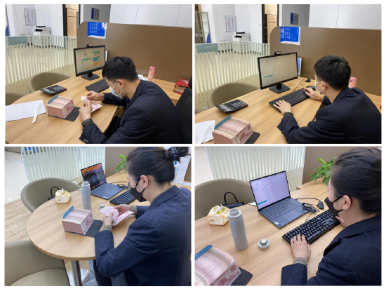 本次技能考试分为三项,分别是单指单张点钞、机器点钞、及小键盘打字。居家期间,各厅堂员工按时保质保量完成训练任务,工作群内每日分享打字技巧共同进步。全体员工对于技能考试信心满满,急切地希望通过考试来检测自己。