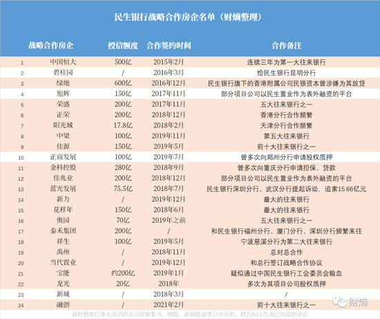 一直以来,民生银行与地产圈深度合作,并和多家房企结下战略合作关系。2017年11月,中国不动产金融年会在北京召开,连续主办了10年年会的民生银行,请来了融创(01918.HK)董事长孙宏斌、旭辉控股(00084.HK)董事长林中、泰禾(ST000732.SZ)董事长黄其森、易居(02048.HK)CEO丁祖昱等数十位地产圈大咖。按照官方说法,这是“合作伙伴之间交流的平台”。