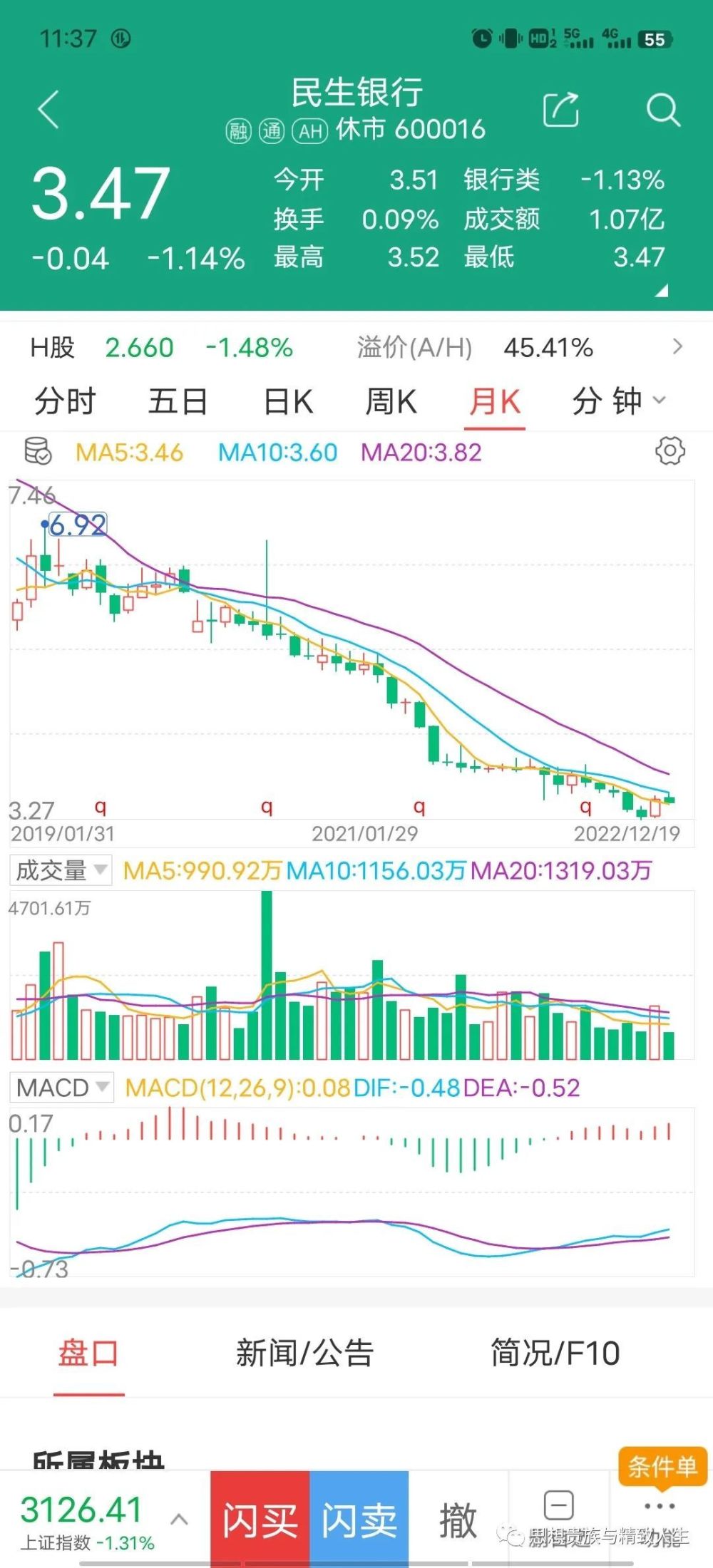 我将继续坚定地买,贪婪地买,用工资继续定投。陪伴民生走出困境,走出历史大底,迎来真正的戴维斯双击!