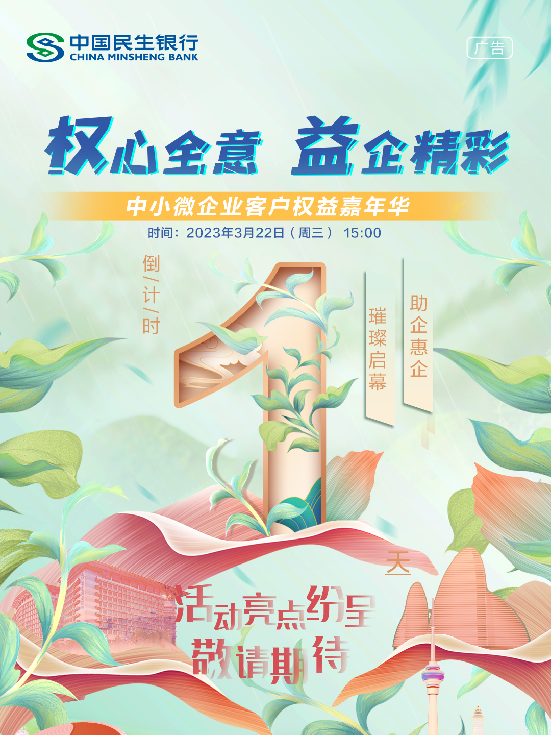 中国民生银行中小微企业客户权益嘉年华倒计时1天 敬请期待