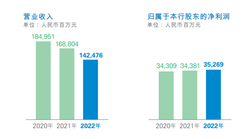 年报显示,2022年民生银行实现营业收入1424.76亿元,同比减少15.6%;归属净利润352.69亿元,同比增长2.58%。其中,利息净收入和非利息净收入均有不同程度的减少,分别较2021年降低14.56%和18.63%。