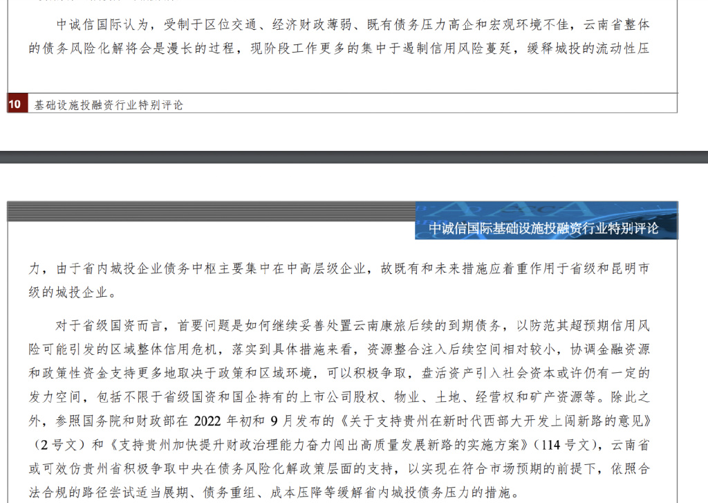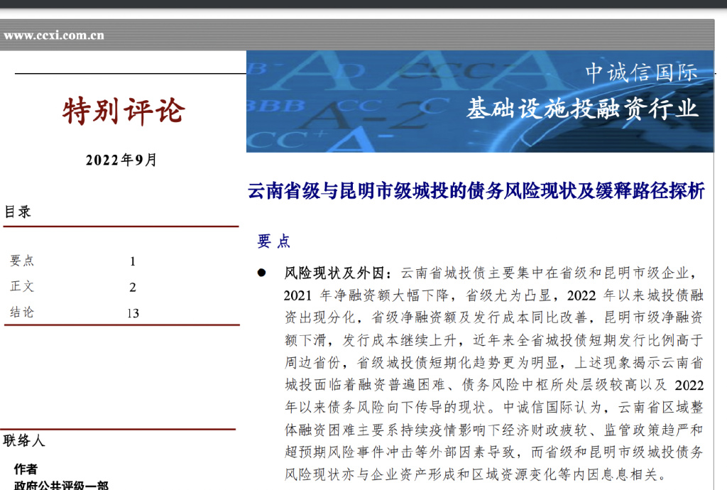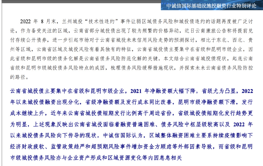 中诚信研究:昆明城投债