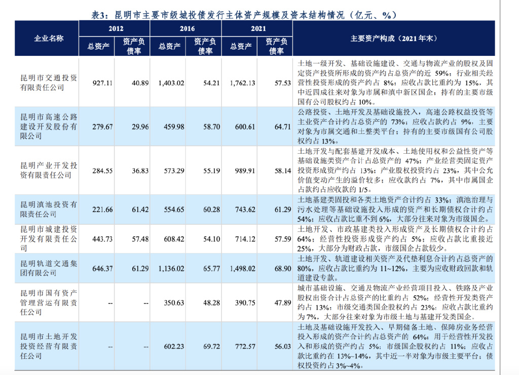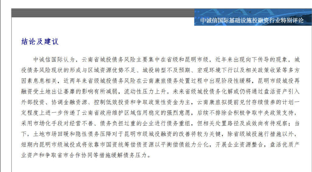 中诚信研究:昆明城投债(摘录)