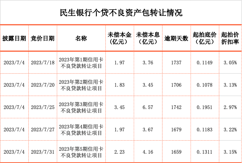 7月4日,民生银行(600016.SH)在银登中心一连挂出5个信用卡不良贷款转让项目,拉开了该行今年150亿元信用卡不良贷款出包计划的序幕。