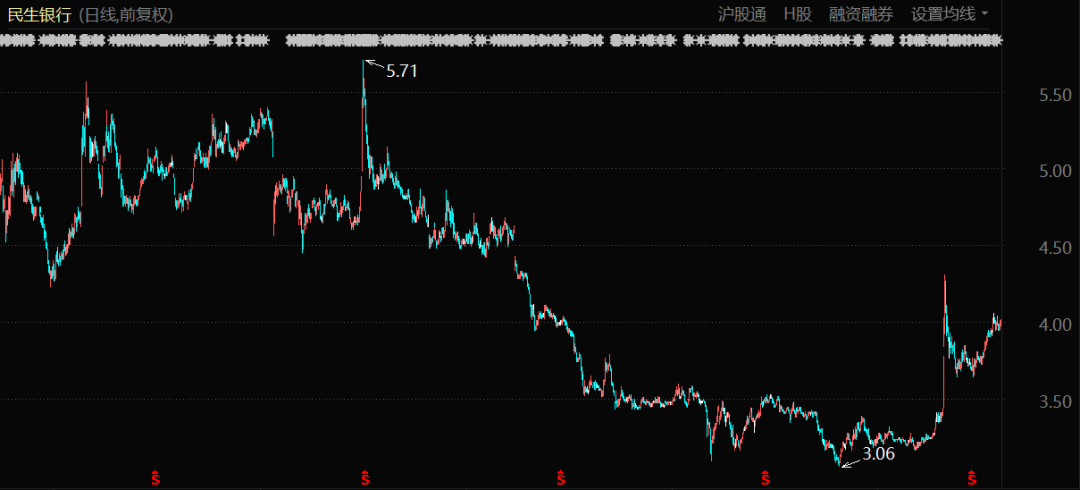 尽管民生银行多次向投资者表示“房地产项目总体风险可控”,但是自恒大爆雷以来的一年里,民生银行的股价一度暴跌超过30%,直到今年踩中了“中特估”的行情,股价才有所回升。