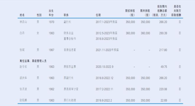 简历显示,白丹今年60岁, 2008 年获北京交通大学工商管理硕士学位,会计师,加入民生银行之前,她曾在交通银行大连分行工作,先后担任大连开发区支行会计、副科长、大连分行财务会计部总经理助理、副总经理、总经理等职务。