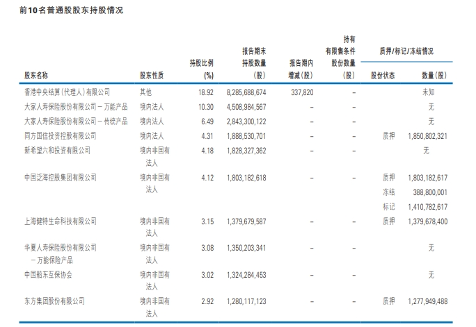 此外,泛海集团持有的民生银行大量股份处于质押和轮候冻结中。民生银行8月12日公告称,截至该公告日,泛海集团及其一致行动人持有民生银行2219553255股无限售流通股,占该行总股本比例为5.07%,其中质押股份2219553254股,占泛海集团及其一致行动人持有该行股份比例为100%;本次轮候冻结1803182618股,占泛海集团及其一致行动人持有该行股份比例81.24%。