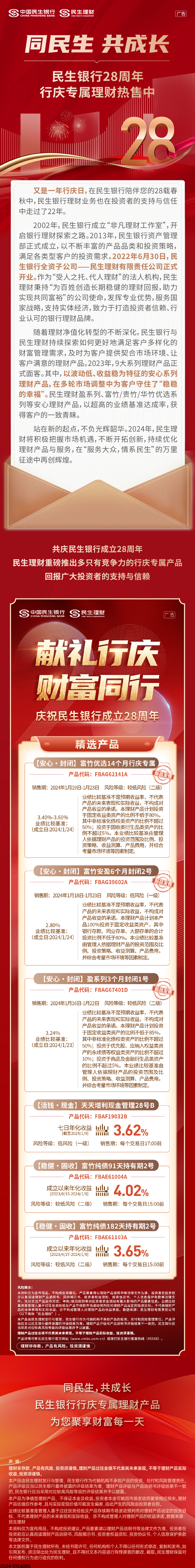 【财富】同民生,共成长!民生银行28周年行庆专属理财热售中