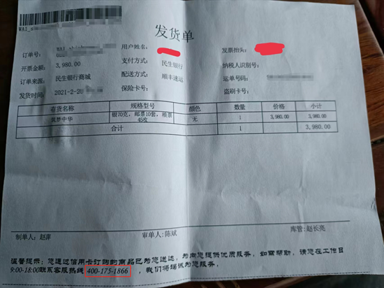 推销时称是民生银行推出的纪念品,销售方实为某电子商务公司?