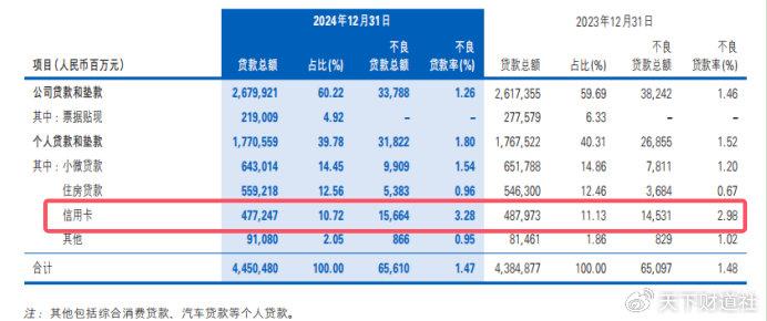 截至2024年末,民生银行信用卡不良贷款率3.28%,同比上升0.3个百分点。