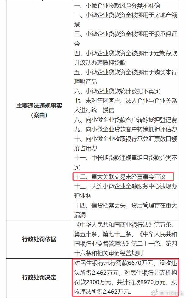 结果如何呢?2023年2月,民生银行被银保监会处以8970万元罚款,其中一个重要原因就是:“重大关联交易事项未经董事会审议”。