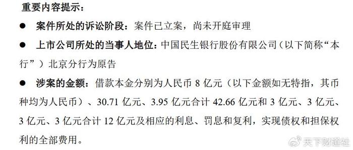 随着东泛海集团、东方集团相继暴雷,与其相关的贷款成为沉重包袱。民生银行不得不通过法律手段追讨贷款。