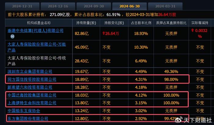 截至2024年底,东方集团及其关联企业在民生银行体系内的贷款余额还超过76亿元。而且,东方集团持有的民生银行12.8亿股中,12.7亿已经被质押,其中12亿股还被司法标记,超过1亿股被冻结。