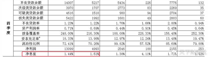 根据国家金融监督管理总局统计数据显示,2024年第四季度,大型商业银行净息差为1.44%,股份制商业银行净息差为1.61%。