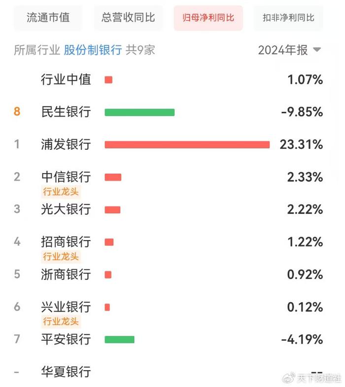 为什么说这是逆流而下的表现呢?因为当前的潮流是,银行总体业绩普遍表现不错。