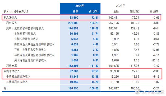 就刚刚过去的一年来说,民生银行的利息净收入和非利息净收入分别下滑近4%、2%。