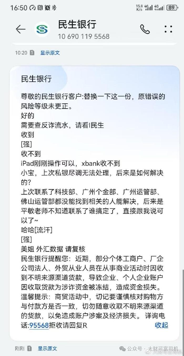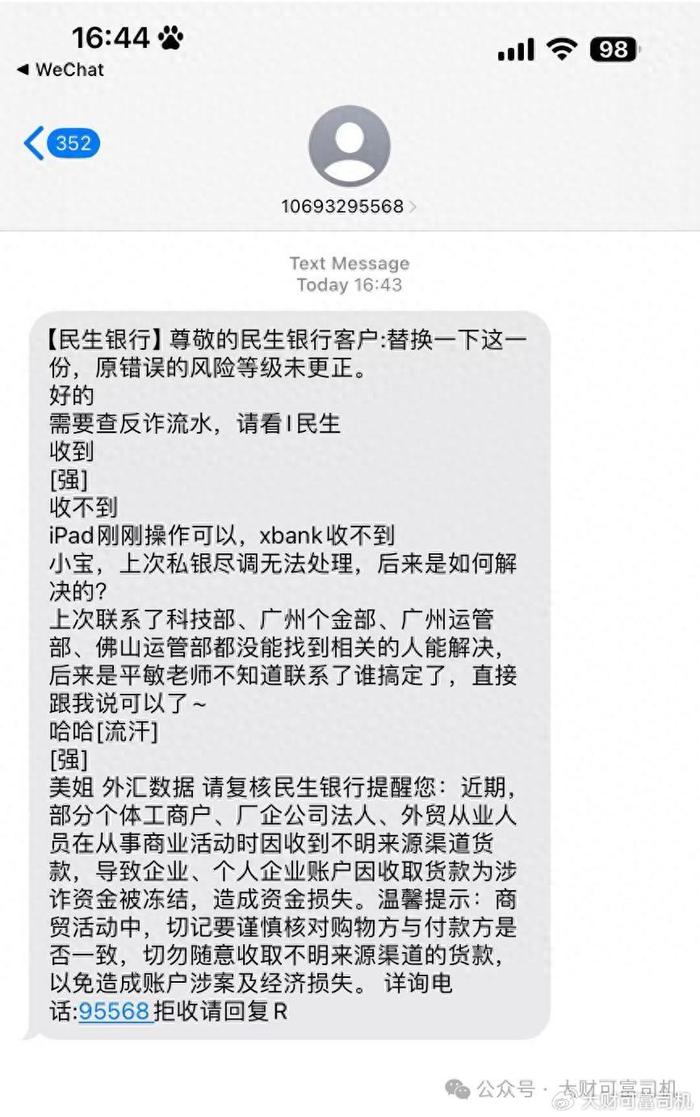 众所周知,在金融业,短信通知向来是神圣不可侵犯的权威领域。每一句话都要经过法务、合规、业务部门三道安检,每个标点都承载着监管红线的重量。但民生银行这条短信却像被撕开的档案袋,将内部沟通的草稿纸直接塞进了对外公告。