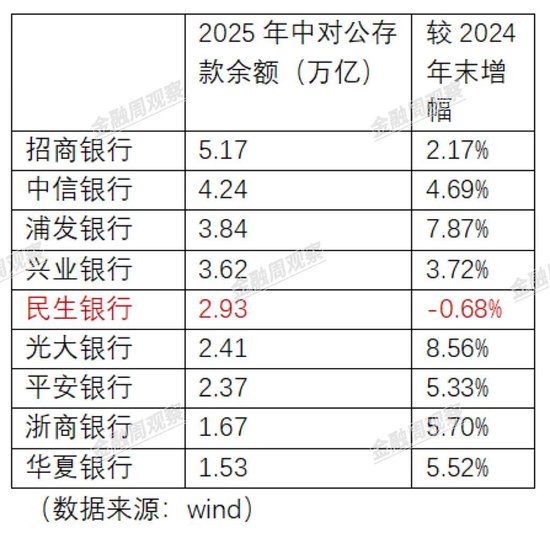 对公存款罕见的表现,或许也与民生银行的对公贷款业务仍在持续调整相关。