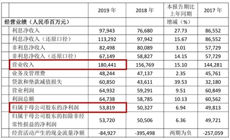 巅峰时期的2019年, 民生银行 实现营业收入1804.41亿元,归母净利润538.19亿元,盈利能力创下历史新高,稳稳跻身股份制银行第一梯队。