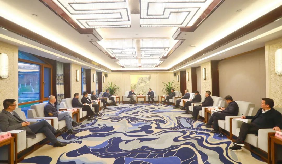 2月15日下午,市委书记刘文华,市委副书记、市长杨文斌在浔会见了上海国际港务(集团)党委书记、董事长顾金山一行,双方就进一步深化合作进行会谈。