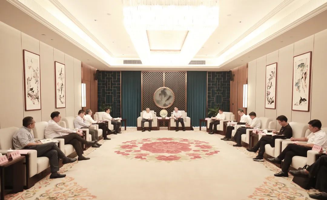 8月20日下午,市委书记刘文华,市委副书记、市长蒋文定在浔会见上港集团党委书记、董事长顾金山一行,双方就进一步深化务实合作、实现互利共赢进行深入交流。