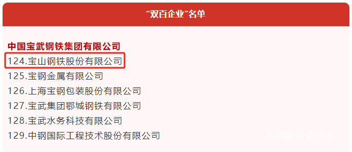 日前,国务院国资委网站公布最新“双百企业”“科改企业”名单,宝钢股份再次榜上有名。这是国务院国有企业改革领导小组2018年组织开展国有企业“双百行动”以来,宝钢股份连续第3次被纳入“双百企业”名单,这既是对宝钢股份以往各项改革工作成绩的肯定,更是对宝钢股份在新一轮国企改革深化提升行动中要不断进步的鞭策。