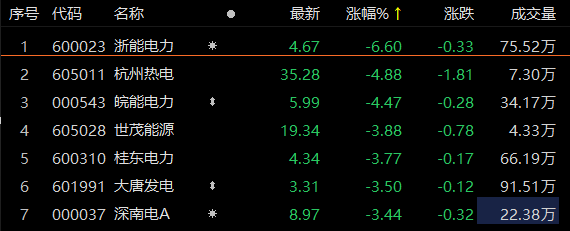 公用事业板块领跌 浙能电力跌超6%