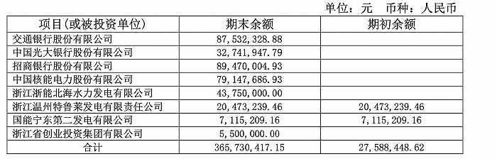 此外,浙能电力还持有交通银行(601328.SH)、光大银行(601818.SH)等公司股权。