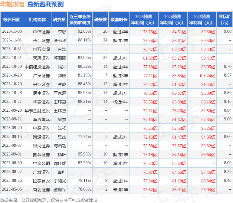 中原证券股份有限公司陈拓近期对华能水电进行研究并发布了研究报告《季报点评:三季度来水偏丰,收购资产提升公司价值》,本报告对华能水电给出增持评级,当前股价为7.93元。
