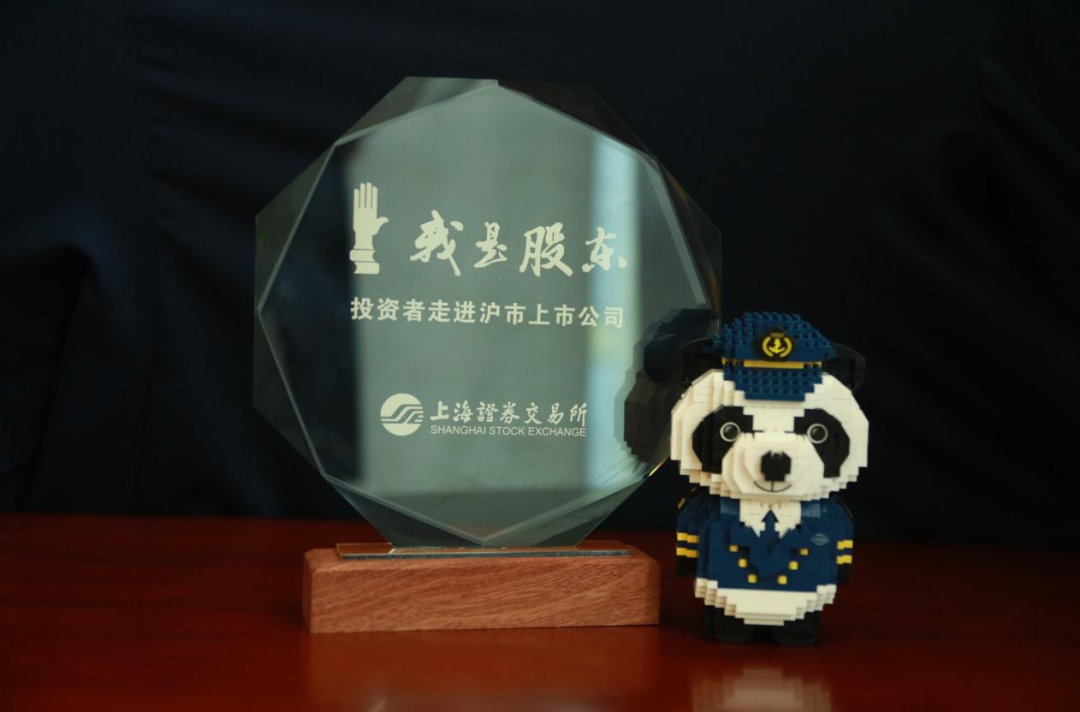 活动结束后,银泰证券上海嘉善路营业部总经理代上交所向中远海能转赠了“我是股东”奖牌并合影,中远海能也向投资者赠送了公司吉祥物“熊猫船长”的拼搭积木。