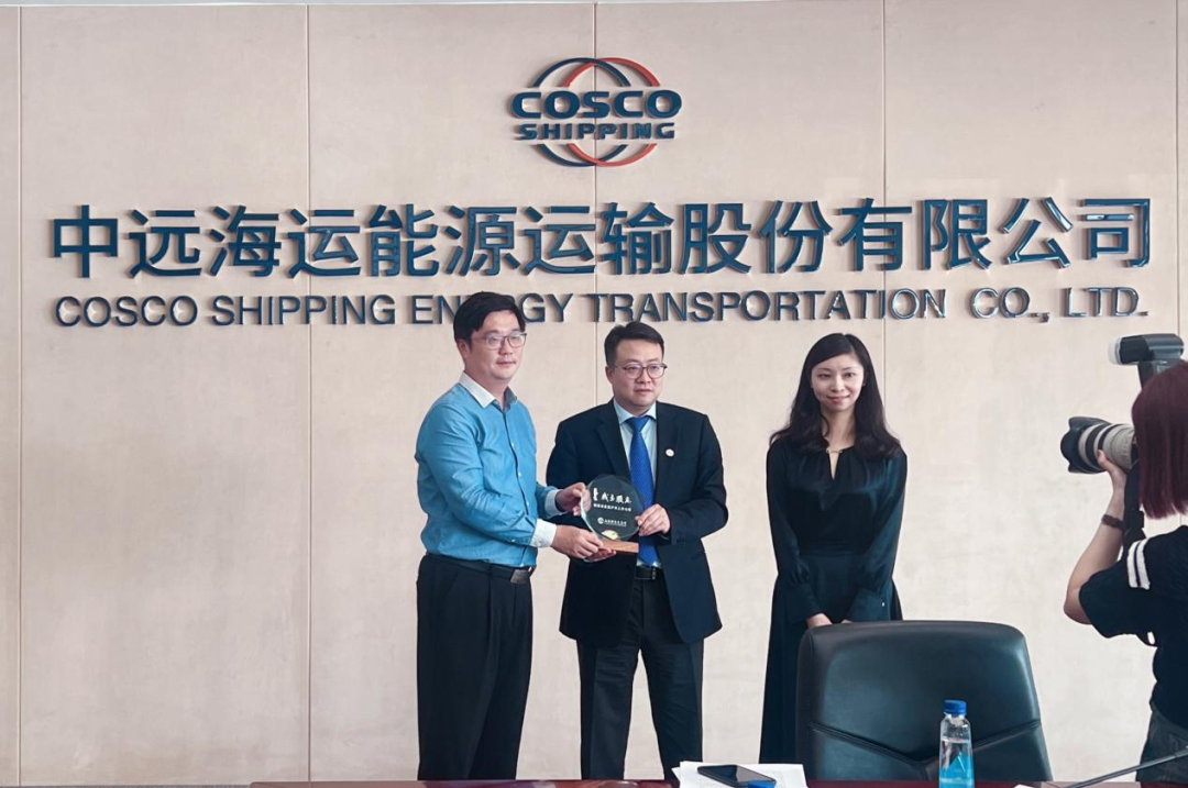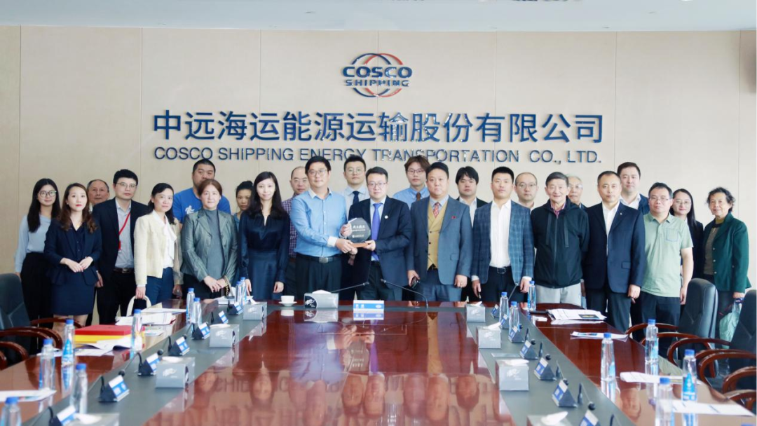 (投资者、中远海能公司代表、银泰证券员工在中远海能会议室合影留念)