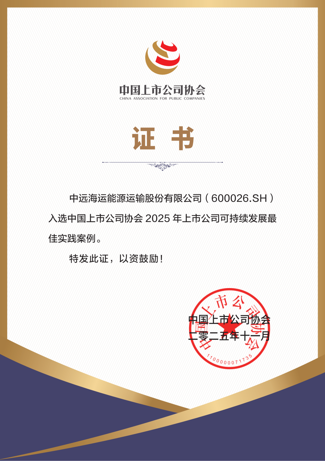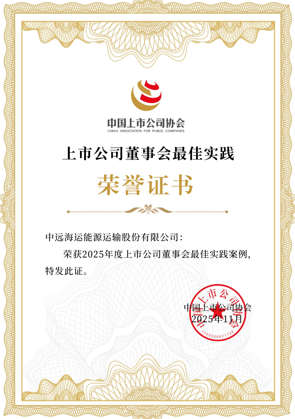近日, 中国上市公司协会 2025年度最佳实践案例评选结果揭晓, 中远海能 (600026.SH)凭借卓越的董事会治理水平与领先的可持续发展实践,入选“董事会最佳实践案例”与“可持续发展最佳实践案例”。